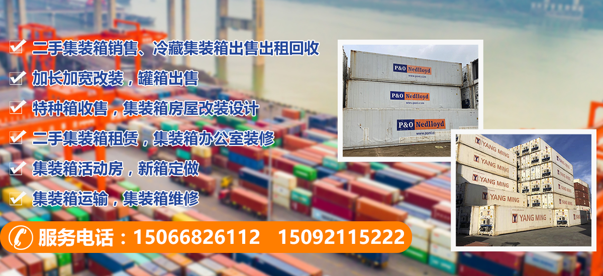 主營;二手集裝箱銷售、冷藏集裝箱出售出租回收、加長加寬改裝,罐箱出售,特種箱收售,集裝箱房屋改裝設(shè)計,二手集裝箱租賃,集裝箱辦公室裝修,集裝箱活動房,新箱定做,集裝箱運輸,集裝箱維修等業(yè)務(wù)